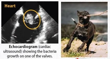 We performed an echocardiogram (a cardiac ultrasound) which showed that he had a growth of bacteria (endocarditis) growing on one of the valves of his heart. The infection from his bites spread via his bloodstream, causing his heart to work less efficiently.