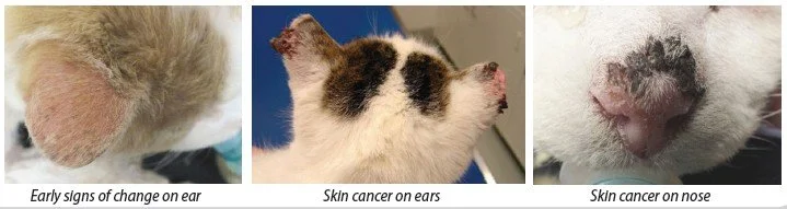 Some pets are more at risk than others. Light-coloured animals, pets with thin or short coats, and those that spend a lot of time in the sun are more prone—especially on areas like the nose, ears, belly, and eyelids. Older pets are also at higher risk, though skin cancer can occur at any age.